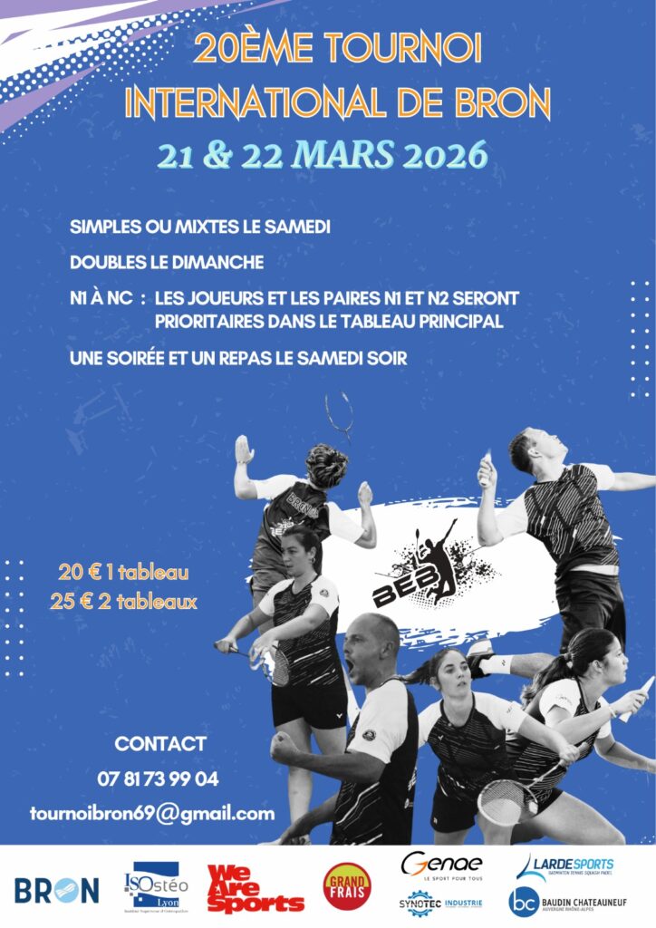 Nous sommes ravis de vous annoncer le retour de notre événement phare : le tournoi International du club de Bron ! Cette année marque une édition spéciale, car nous célébrons la 20ème année de ce tournoi incontournable. Et pour fêter dignement ce 20-ème anniversaire, de nombreuses surprises vous attendent :